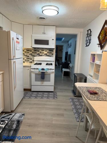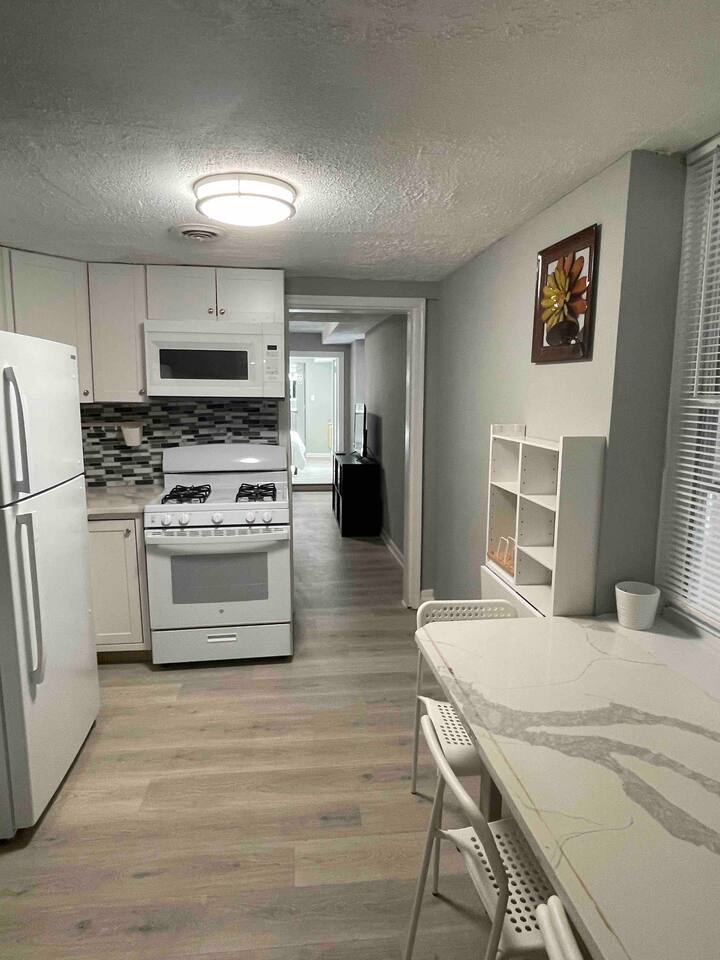 The property is a charming, renovated rowhouse in the heart of the Upper Fells Point, offering modern amenities and comfortable furnishings. Inside, you'll find a spacious living room with plenty of seating, perfect for relaxing after a day of sightseeing or business meetings. The fully equipped kitchen is perfect for preparing meals and has all the necessary appliances, including a stove, refrigerator, and dishwasher. Both bedrooms are furnished with comfortable beds and plenty of closet space. Each bedroom also has its own private bathroom, ensuring that everyone has their own space and privacy. Other amenities include high-speed internet, a washer and dryer, and a small beautiful outdoor patio area perfect for enjoying your morning coffee or relaxing after a long day. We take pride in keeping our home clean and well-maintained, and we're confident that you'll love staying here. Book your stay today and experience all that Baltimore has to offer!